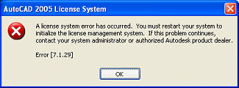 Product Activation License Error 7 1 29 Autocad Autodesk